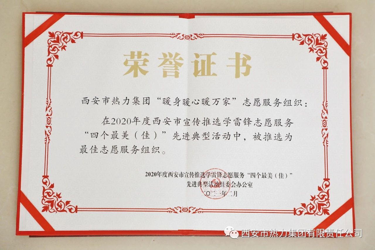 3月5日,西安市委宣传部、西安市委文明办等14部门公布了2020年西安市学雷锋志愿服务“四个最美(佳)”先进典型名单,麻豆社 “暖身暖心暖万家”志愿服务组织荣获西安市“四个最佳”志愿服务组织。